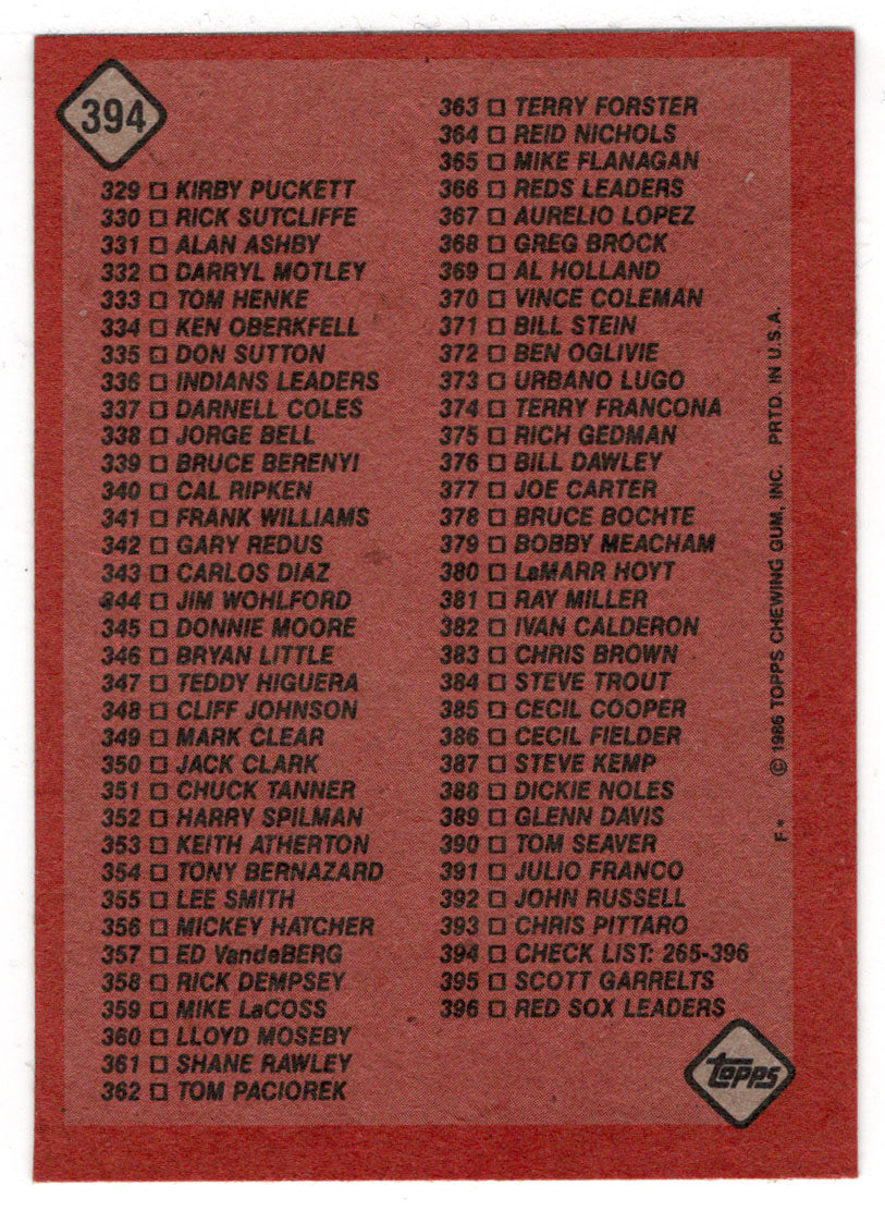 Checklist # 3 (MLB Baseball Card) 1986 Topps # 394 Mint