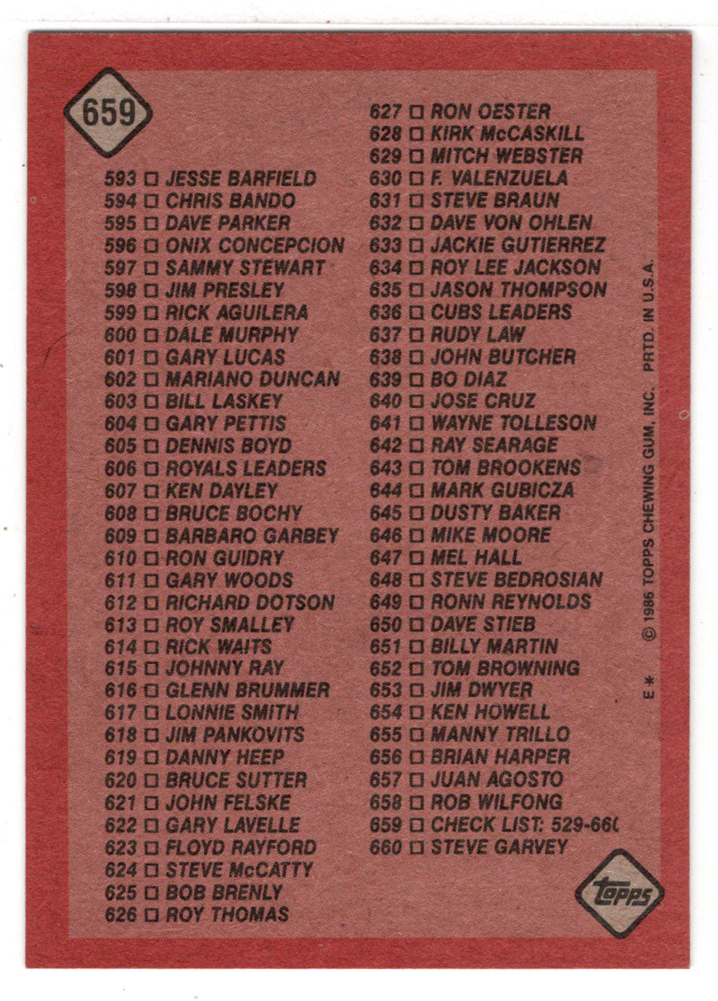 Checklist # 5 (MLB Baseball Card) 1986 Topps # 659 Mint