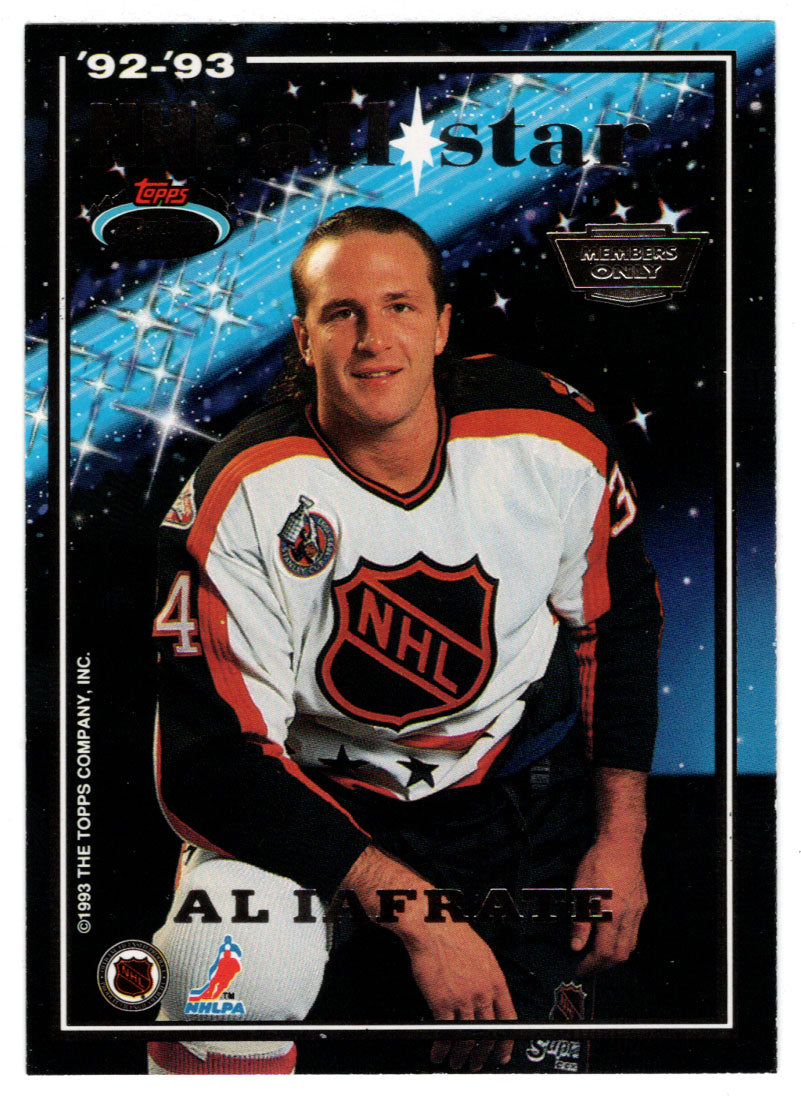 Capture a piece of ice hockey history with the 1993-94 Topps Stadium Club card featuring NHL All-Stars Chris Chelios and Al Iafrate. This iconic collectible showcases two of the National Hockey League's finest players from the early '90s, making it a must-have for any serious hockey enthusiast or card collector. Proudly produced by Topps, this card is part of the renowned 1993-94 Topps Stadium Club set, known for its exceptional quality and design. The insert highlights the athleticism and prowess of these legendary players, commemorating their contribution to the sport during a memorable season for the NHL.