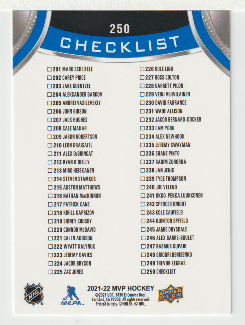 2021-22 Upper Deck MVP 'Factory Set' (Blue Trim) NHL Hockey Card